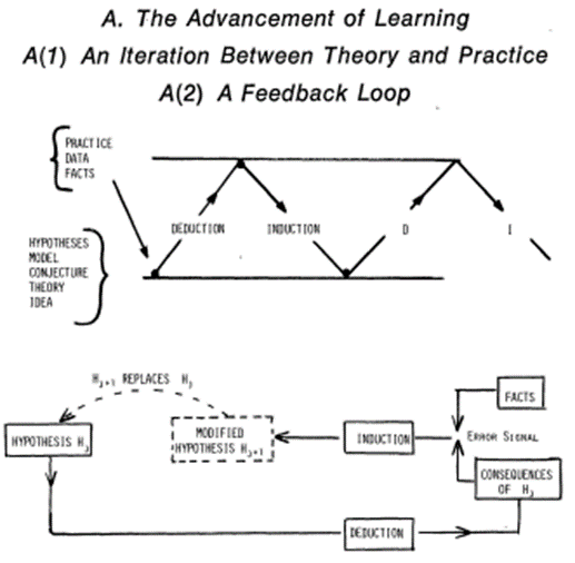 Science is a means by which learning is achieved, not by mere theoretical speculation, on the one hand, nor by the undirected accumulation of practical facts, on the other, but rather by a motivated iteration between theory and practice, as illustrated in Figure A(1).