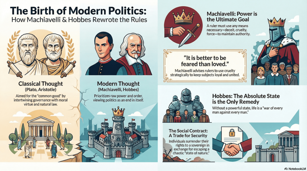 • I. The Break with Classical Political Thought: Machiavelli and Hobbes as Precursors of Modernity