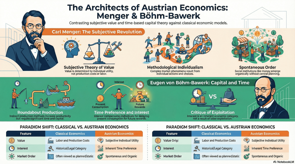 Böhm-Bawerk’s emphasis on time, intertemporal choices, and the dangers of interfering with market signals strengthened the Austrian framework, influencing debates on monetary policy and economic planning.