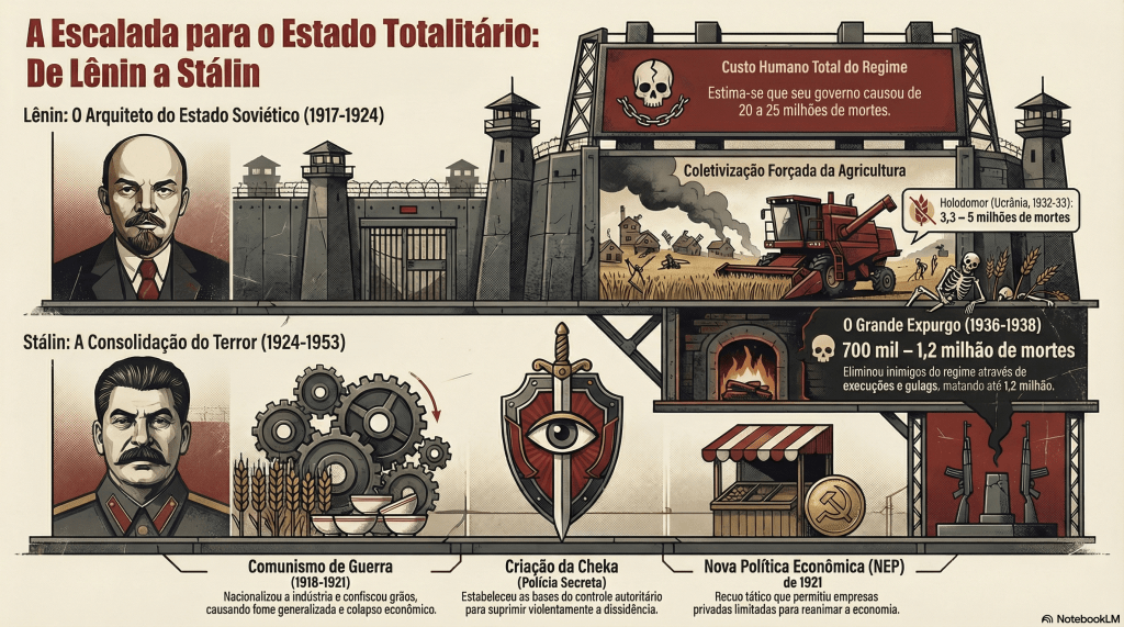 A evolução da URSS para um Estado totalitário começou sob Lenin, mas se intensificou sob Stalin.