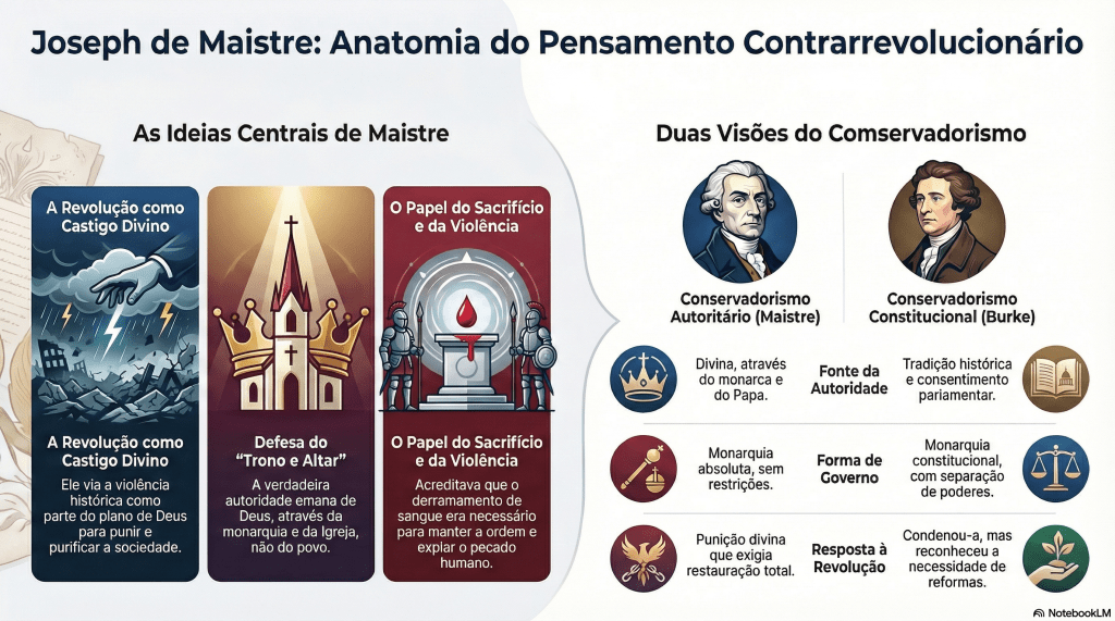 | Dimensão | Edmund Burke | Joseph de Maistre |